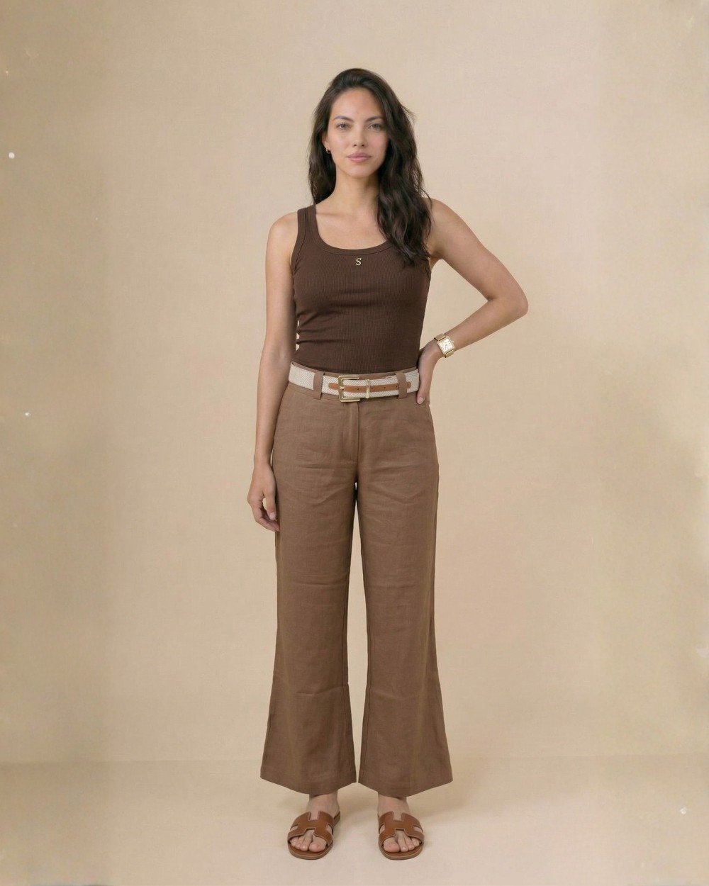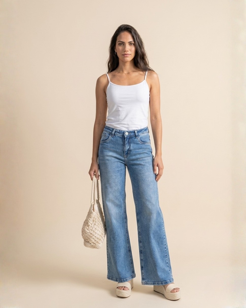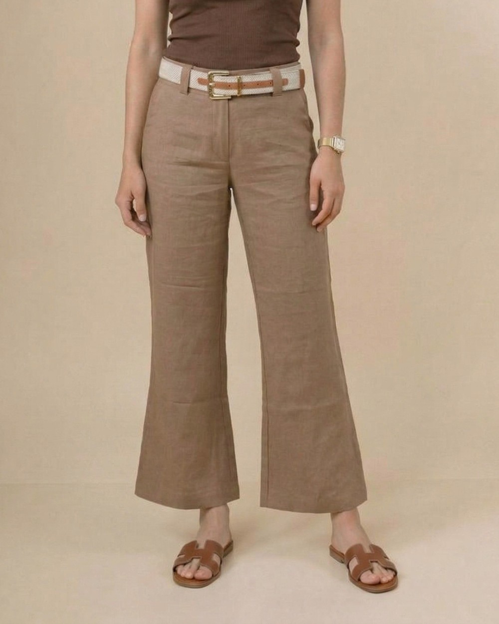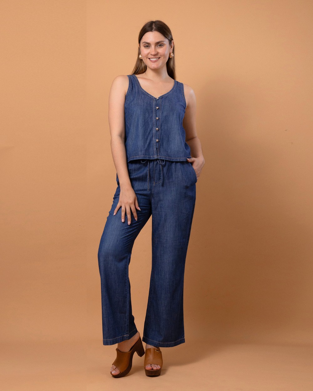 Elaborado en algodón Lino, de bota amplia que estiliza visualmente la figura y alarga las piernas. Su diseño de tiro medio-alto define la cadera de manera natural, mientras que su tela ligera aporta frescura y comodidad durante todo el día.