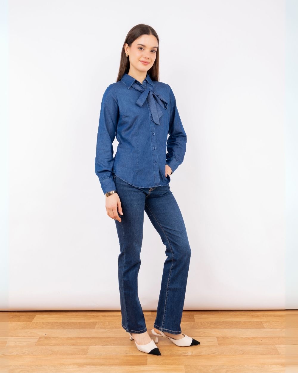 Una pieza esencial y versátil para tu clóset. Su diseño de corte clásico con cuello camisero y botones frontales transmite elegancia sin esfuerzo, mientras que la tela ligera y cómoda la hace ideal para acompañarte en el día a día. Perfecta para llevar sola o como base para looks más sofisticados con sacos o chaquetas.