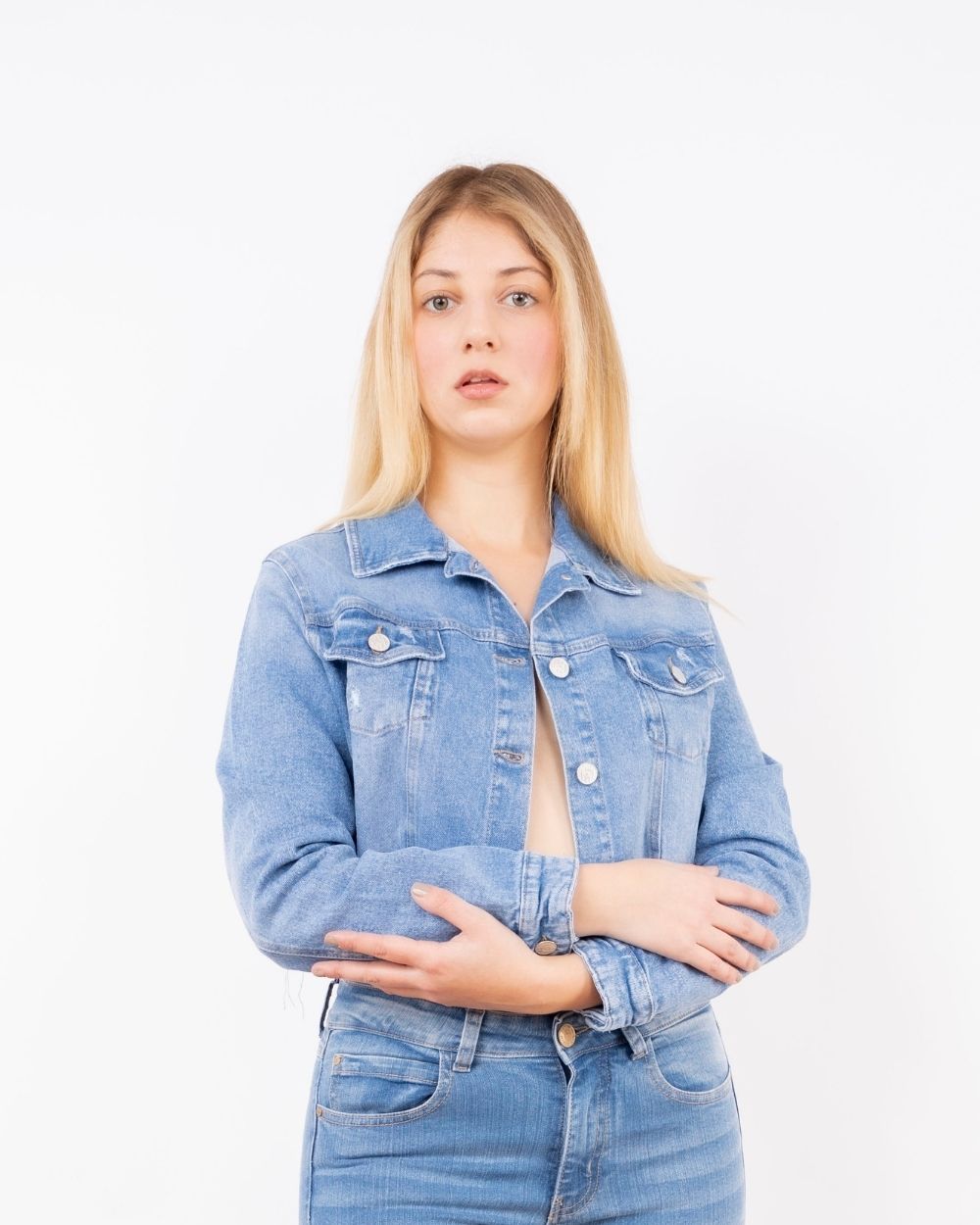 Un clásico atemporal que no puede faltar en tu guardarropa. Su silueta recta y ligera la convierte en una pieza versátil, ideal para complementar desde looks casuales hasta estilos más modernos. Cuenta con bolsillos delanteros funcionales y botones metálicos que realzan su estilo urbano. Confeccionada en tela denim rígido, resistente y de acabado claro, que aporta frescura y un aire juvenil.