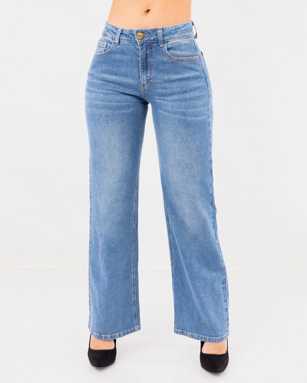 Un diseño cómodo y elegante que aporta fluidez a tu estilo. Su tiro medio semi cadera ofrece un ajuste natural, mientras el corte wide legs equilibra y estiliza la silueta. Confeccionado en tela denim confort, brinda suavidad y resistencia para acompañarte en cualquier ocasión.