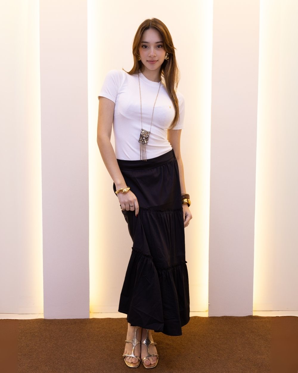 Confeccionada en seda francesa, esta falda destaca por su caída ligera y elegante, ideal para crear un look sofisticado sin esfuerzo. Su diseño en capas aporta movimiento y fluidez, mientras que el elástico en la cintura asegura comodidad y un ajuste favorecedor que realza tu silueta. Una prenda versátil que puedes llevar desde el día hasta la noche, adaptándose fácilmente a distintos estilos y ocasiones.