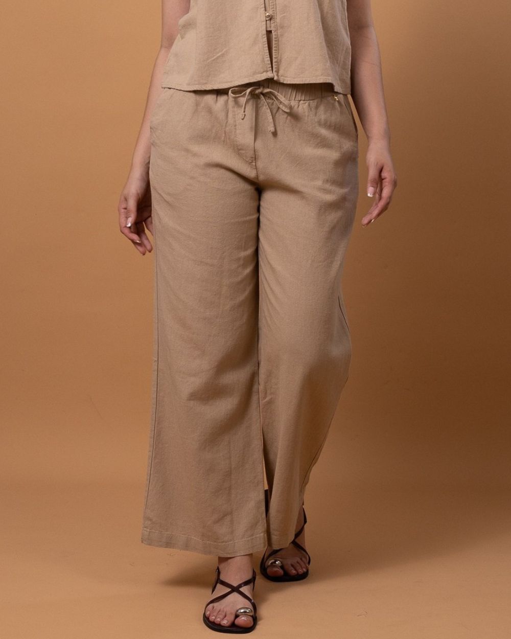 El equilibrio ideal entre comodidad y estilo. El Pantalón Chanel presenta un corte amplio y relajado con cintura elástica ajustable, pensado para brindar libertad de movimiento y un look sofisticado sin esfuerzo. Confeccionado en lino, es ligero y fresco, perfecto para días cálidos o para armar conjuntos versátiles y elegantes.