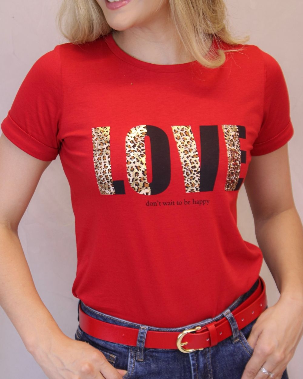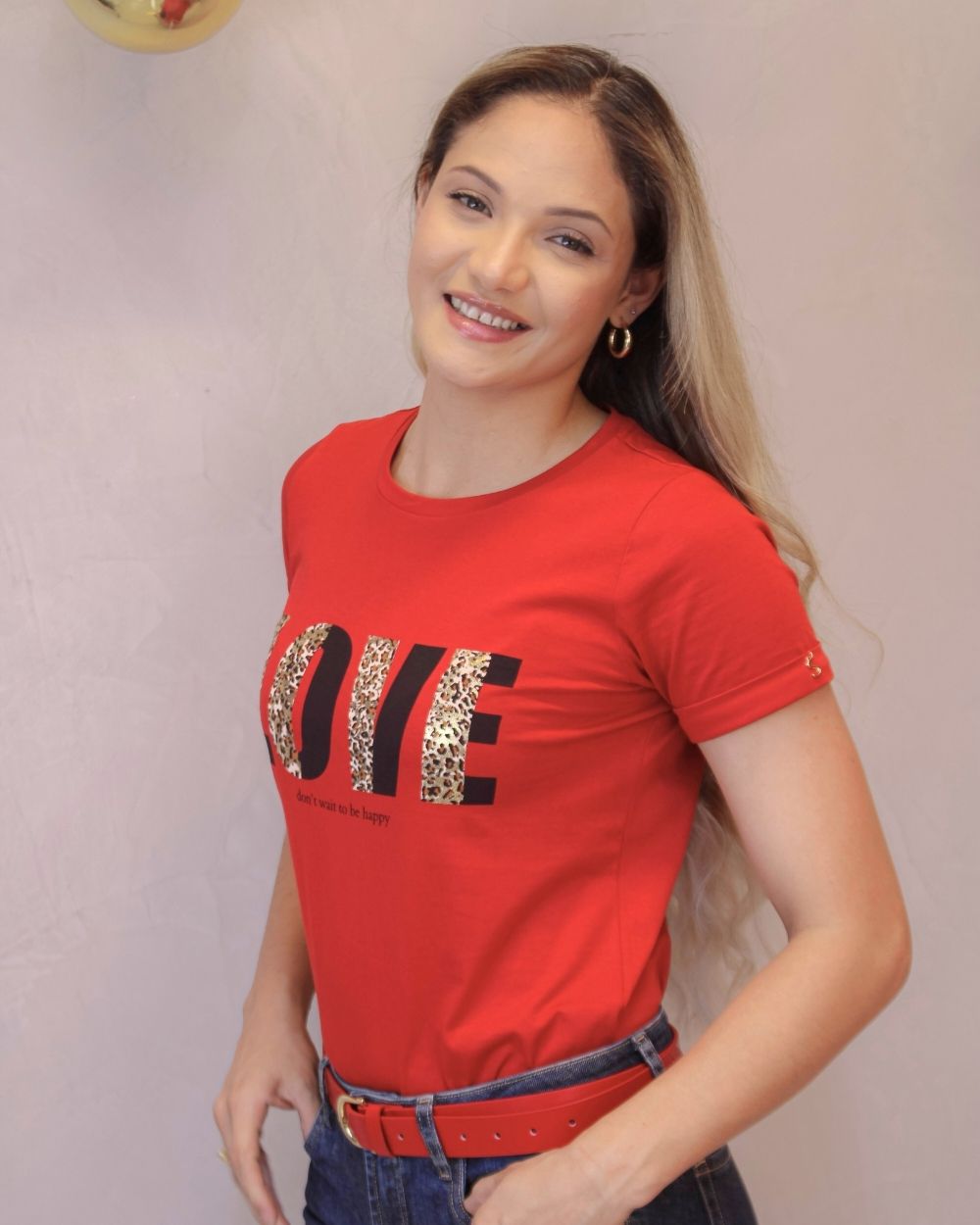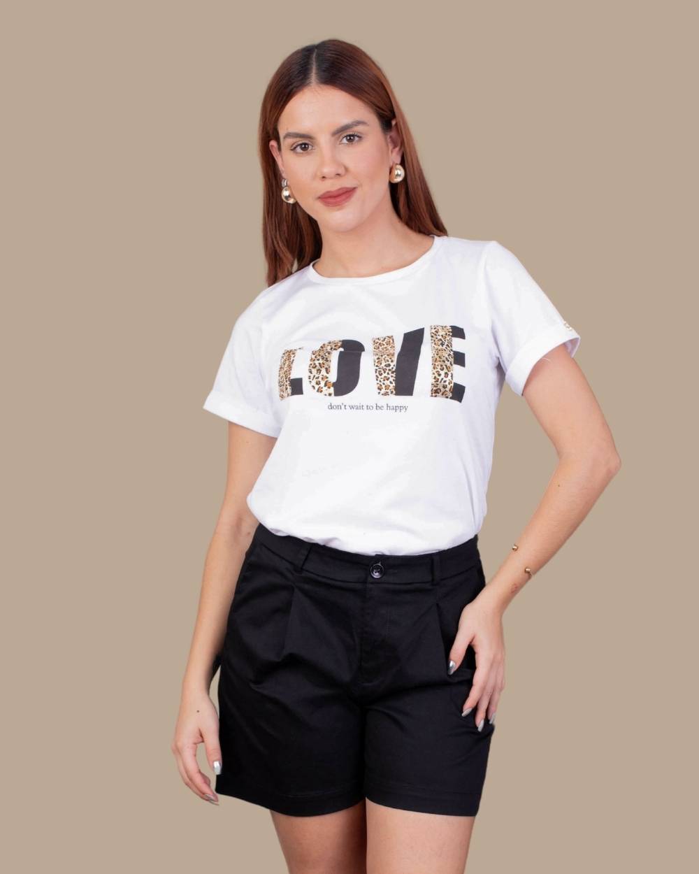 Composición: 100% algodón peruanoFit: Corte clásicoDetalle: Estampado frontal “LOVE” en animal print + logo metálico dorado en mangaCuidados: Lavar a mano o en ciclo delicado. No usar secadora.