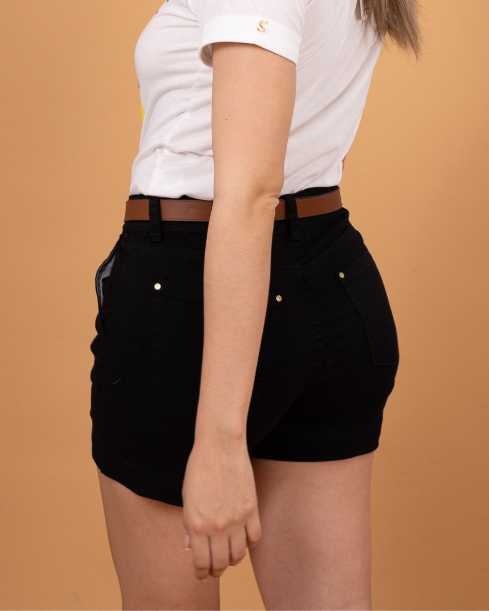 Short SashaUn básico versátil para el verano. Confeccionado en denim stretch, ofrece comodidad y libertad de movimiento, manteniendo una silueta favorecedora. Su diseño clásico y fresco lo convierte en un infaltable para looks casuales y elegantes.